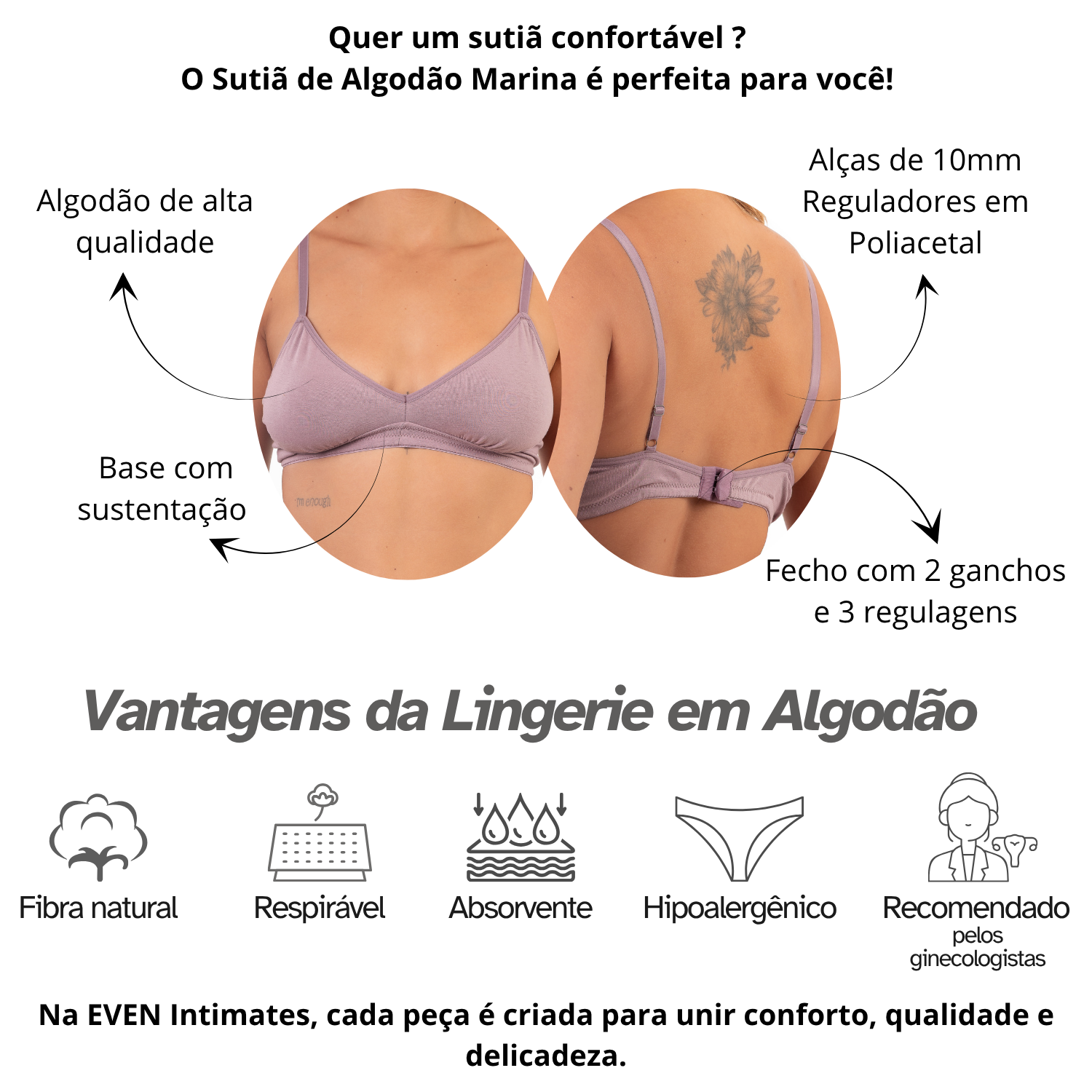 Confeccionado em Algodão macio e com modelagem básica que trás conforto para o dia a dia, suas alças de 10mm são ajustáveis com regulagens em poliacetal (material hipoalergênico). É uma peça com boa sustentação.