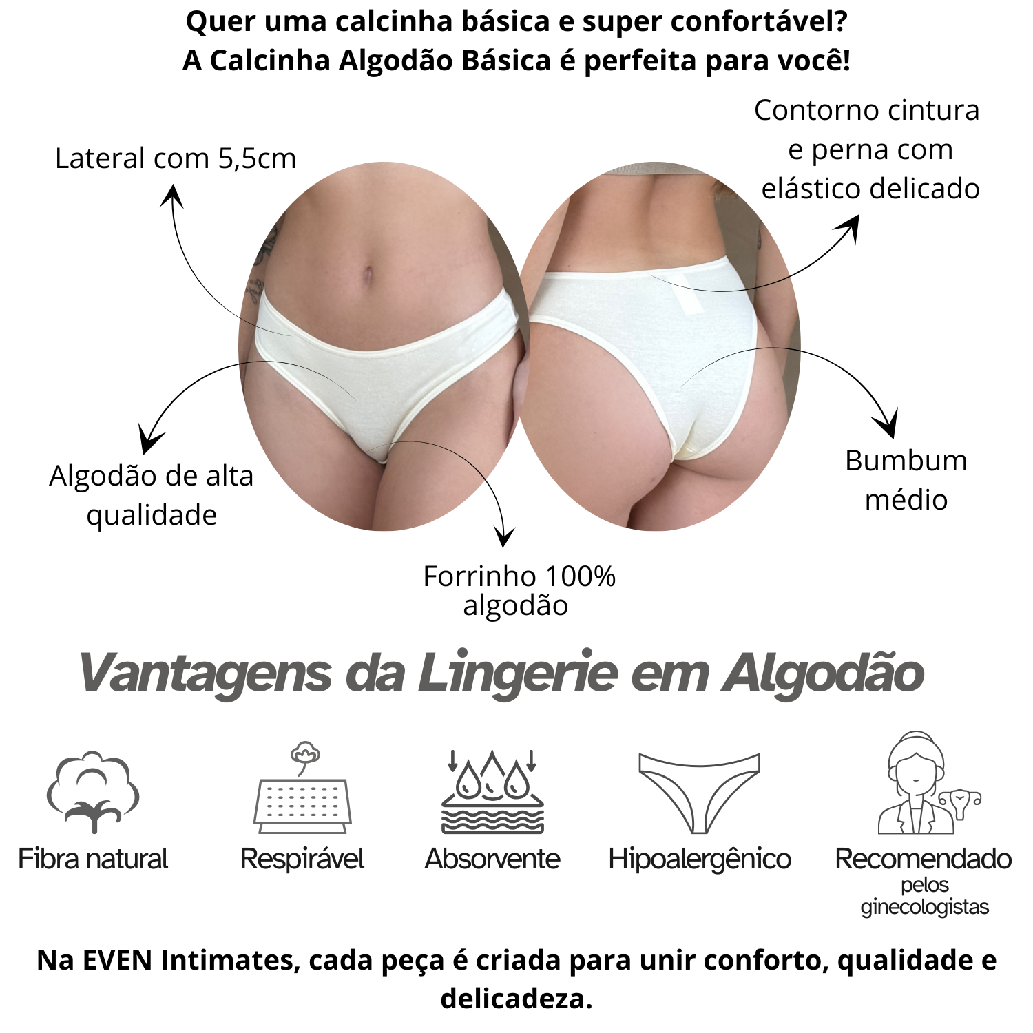 Calcinha básica de algodão confortável – leve e respirável para o dia a dia | EVEN